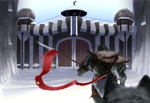 Лениво потягиваясь и зевая, выйдя из давно не закрывавшихся главных ворот стены, Багро поглядел на горизонт, в сторону неизвестных земель, где брало начало ущелье. Меж скал ущелья виднелось восходящее солнце. Вновь выпавший ночью снег ослеплял своей белизной глаза, уже давно не удивляя ежедневно смотрящих на него. Легкий морозец освежал воздух, придавая ему особенный, до жадности манящий его вдохнуть снова и снова вкус, заставляя этим дышать глубоко и очень часто. Погода тем утром была тихой, безмятежной, другими словами, волшебно-чудесной.