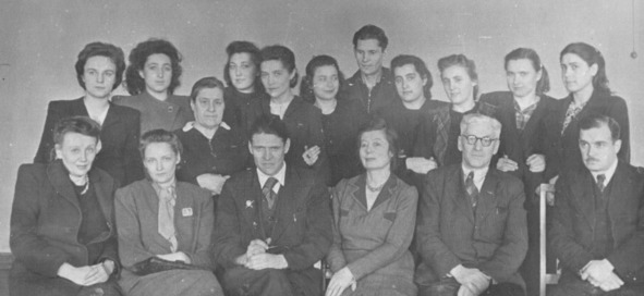 Мама (крайняя справа во втором ряду) среди однокурсников и преподавателей факультета, 1947 г.