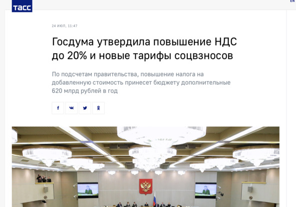 А повышение налога (!) на добавленную стоимость на фоне информационного шума по поводу пенсионной реформы прошло удивительно незаметно.