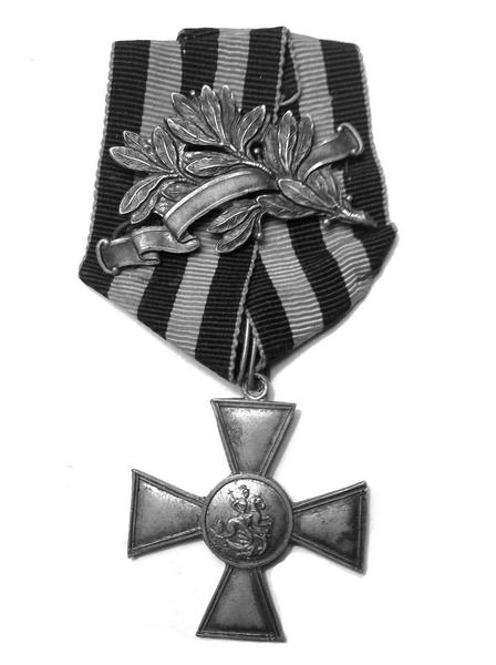 Георгиевский крест с лавровой ветвью. Таким награждались после февраля 1917 года офицеры, отличившиеся в бою.