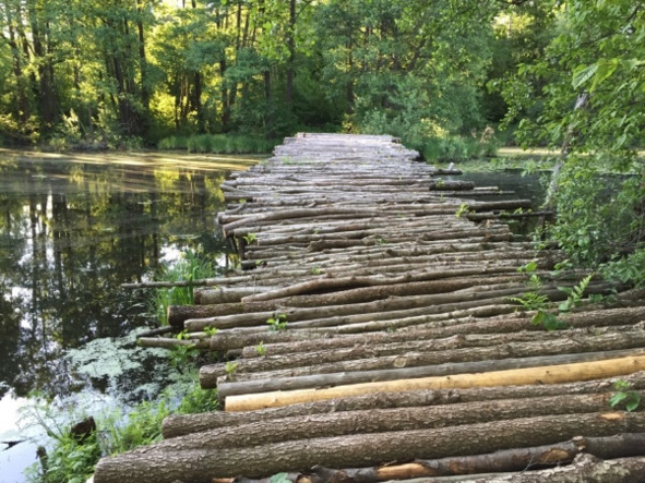 Иду и наслаждаюсь лесной прогулкой. А вот и камень. Это ориентир, дальше дорога проходит по болоту и нужно ступать очень аккуратно, чтобы не провалиться. Подыскиваю себе крепкий посох из упавшей ветки и прощупываю тропу перед собой. Иду примерно два часа, двигаюсь медленно – не хочу окунуться в болото. Вот наконец и нужная мне река, вот и мостик. Перебираюсь на другую сторону. Я пришёл!