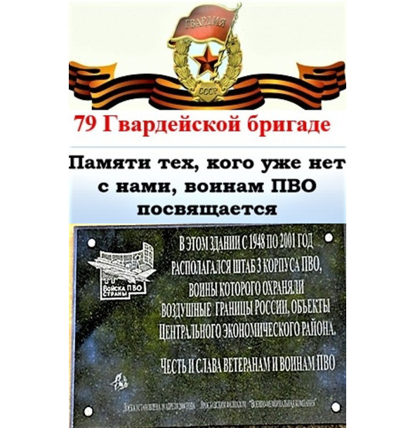 …79-я гвардейская зенитно-ракетная бригада (в/ч 62952, с дислокацией ее штаба в г. Череповце) входила в состав 3-го (Ярославского) корпуса ПВО Московского округа ПВО.