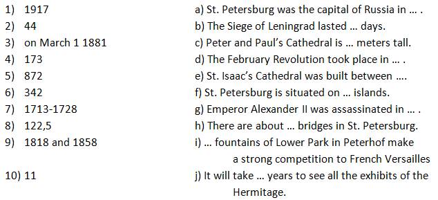 1. Make up special questions concerning the information about St. Petersburg from the text.