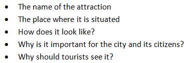 1. Find in the texts adjectives which are used to describe architectural monuments. Write them down. Use them to describe any attractions of the city for tourists according to the following plan: