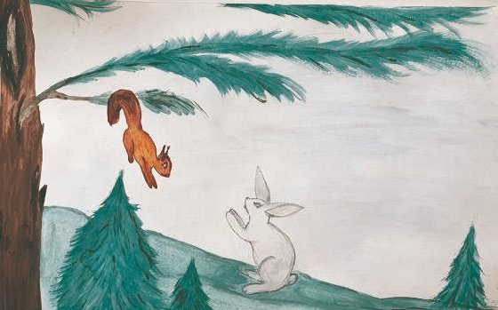 «А-а-а, это Белочка прячет у себя Луну», – подумал Зайка и вприпрыжку помчался к сосне.