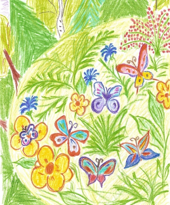 Антошка согласно кивнул, и дети побежали наперегонки по знакомой дорожке. В лесу они нашли чудесную поляну. Она была солнечная и вся в цветах. Но самым удивительным оказалось то, что на этой поляне жило огромное количество бабочек! Было похоже, будто у них здесь собрание, и красавицы собрались обсудить что-то очень важное. Разноцветные бабочки сидели на больших жёлтых цветах и широких листьях, парили в воздухе – одним словом, они были везде. Оля никогда не видела так много бабочек сразу.