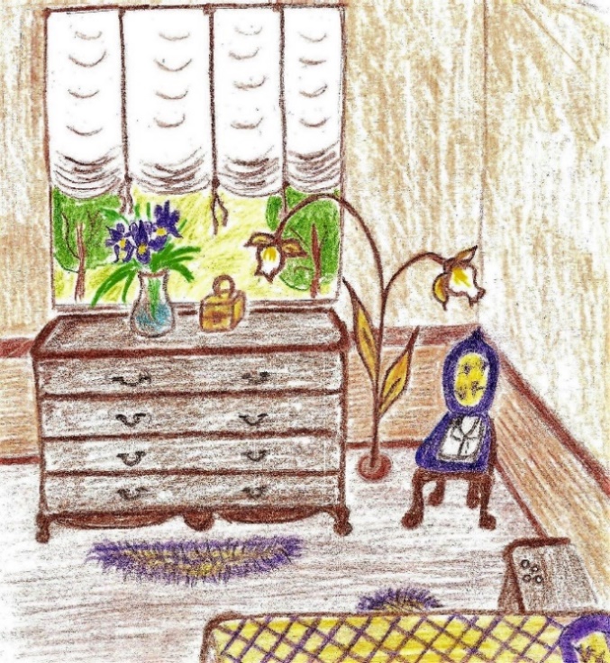 Оля, повеселев, села к столу и, достав цветные карандаши, начала рисовать.