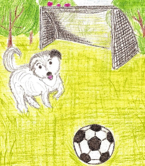 И дети с Ымкой стали играть в футбол: Антошка стоял на воротах, а Оленька с Ымкой были нападающими. Столько хохота, визга и лая в этом дворе не было никогда! Неожиданно Ымка загрустила. Она легла в стороне и положила печальную белую мордочку на мягкие лапки. Дети встревоженно подбежали к ней: