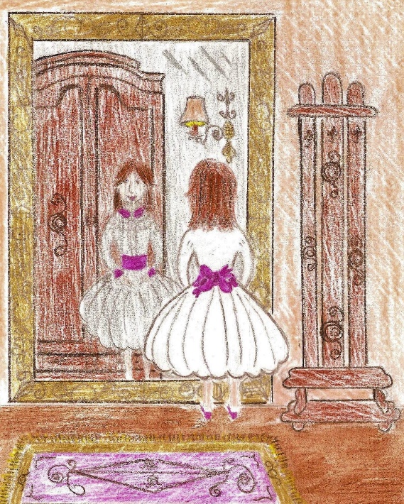 Олечка, наскоро позавтракав, побежала в детскую. Как и сказала мама, на стуле у окна висела новая юбка. Это была не просто юбка, а мечта любой девочки: белая, пышная с широким розовым поясом и большим бантом сзади. Здесь же висела белая блузка с манжетами и воротником в тон поясу. Олечка аккуратно надела блузку, а затем и юбку. Легко застегнула кнопки на поясе и побежала в прихожую к зеркалу.