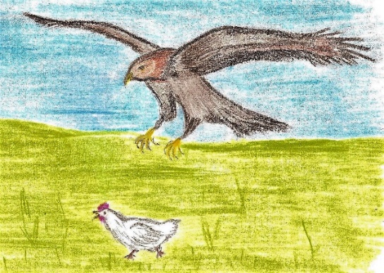 Пока Оленька завтракала, папа рассказал, что в деревню повадился летать ястреб. Он ворует кур, и жители деревни не знают, как с ним справиться.