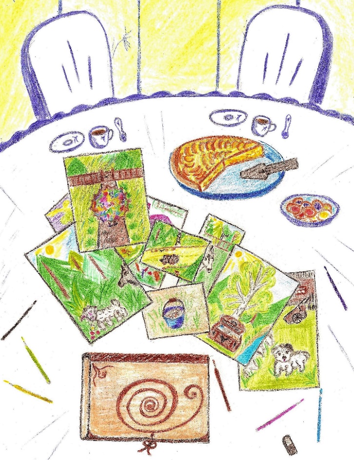 Оленька быстро вскочила и побежала в детскую, а когда вернулась, в руках у неё была толстая папка с картинками, которые девочка тут же стала раскладывать на столе.