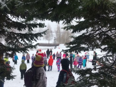 Накануне Нового года, в один из субботних дней, ученики 1Б класса, вместе с родителями, пошли в Ландшафтный парк Митино на встречу с дедом Морозом и Снегурочкой.