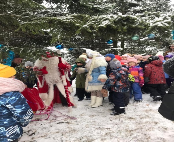 Не успев налюбоваться красивыми украшениями, оглянувшись, все увидели, что к ним приближаются дед Мороз со Снегурочкой. Радости детворы не было предела. Как же они ждали этого момента!