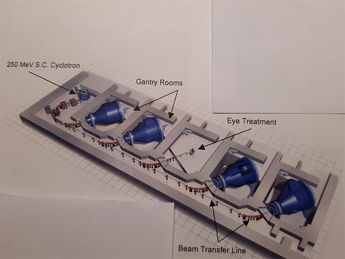 После ознакомления с русским вариантом установки протонной терапии у меня появились сомнения, а оптимален ли выбранный вариант? В Мюнхене реализуется технически очень сложная система, это связано и с тем, что циклотрон сверхпроводящий, весом в 100 т и с тем, что применены для облучения сложные устройства, и с тем, что пучок распределяется на 5 направлений. А ведь главное – это эффективность лечения, методика лечения и для достижения этой цели, система должна быть оптимальной, без излишних технических наворотов, которые вызывают ненужные проблемы и отдаляют само лечение. Кроме всего, пучок постоянный 250Мэв, нерегулируемый по мощности и требуются специальные устройства для его распределения по направлениям и фокусирования.