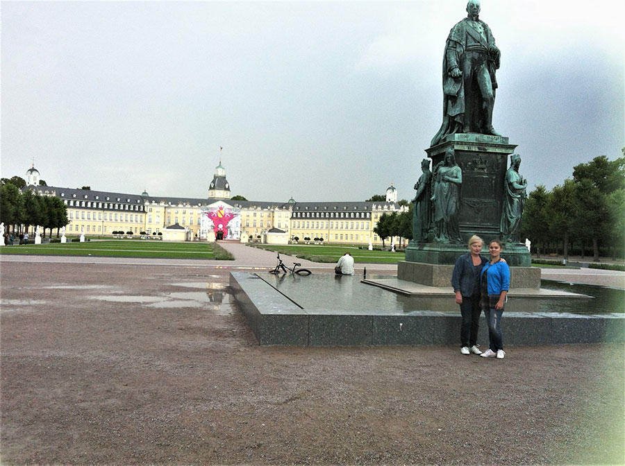 Карлсруе – интересный красивый город на юге Германии, земля Баден-Вюртенберг. В центре расположен большой парковый ансамбль и старый ухоженный дворец с башнями и скульптурами. Очень много старых богатых и красивых зданий вокруг, скорее всего здесь не было разрущительных бомбёжек во время войны и они сохранились прекрасно. Мы поселились в университетском гастхаусе почти в центре, так что можно часто наслаждаться этим красивым местом. Центр города очень уютный, по Кайзерштрассе, центральной улице, ходят трамваи очень осторожно, здесь нет переходов, люди кругом снуют взад-вперед без всяких правил и светофоров. Кругом одни магазины, бутики и полно людей в любое время.