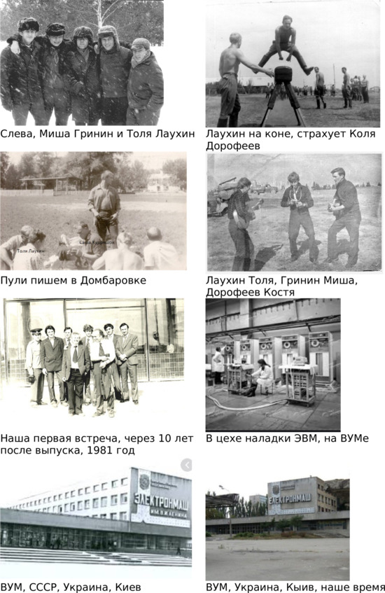 Последняя встреча с Лаухиным в январе 1981 года, когда приехал в Киев, на научную конференцию, в Киевский институт кибернетики. В Польше генерал Ярузельский ввел военное положение, а в заснеженном Киеве стояла морозная погода. Помню, поздно добрался до улицы, где жил товарищ (малосемейка рядом с ВУМом, метро Святошино). С пустыми руками приходить не привык. Винные отделы в магазинах закрывались в 19.00. Вошел в магазин, вижу длинную очередь, понимаю, что не успею. Подошел к началу, попросил пропустить, сказал, что из Москвы, к другу приехал. Толпа угрюмо молчит. Спросил еще раз – не пускают, собираюсь уже уходить, вдруг слышу голос сзади с украинским выговором – отпустите этому москалю, у них такой водки нет, пусть берет. С радости взял две. До гибели СССР оставалось 10 лет, люди еще не озверели. Встретились с Анатолием, долго сидели, вспоминали Рязань, проговорили о многом. Договаривались встретиться в Рязани, на 10-летие выпуска, в мае 1981 года, но не случилось…