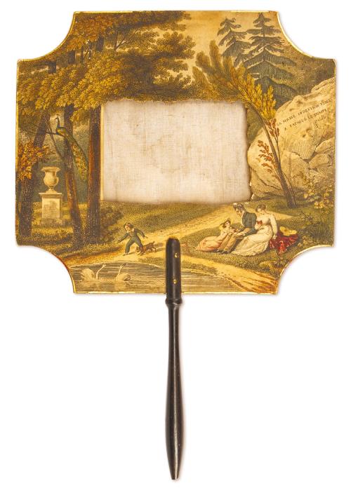Веер-экран каминный, картон, сетка, раскрашенная гравюра.