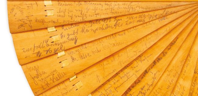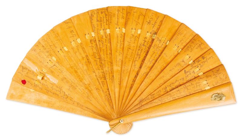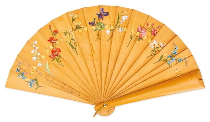 Веер бризе, дерево, металл, рисунок, рукописные тексты.