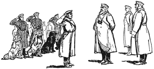 И вдруг, как снег на голову, инспектирующий насчет собак. Приказ: построить дивизию. Построили… Наш полк в дивизии четвертый – левофланговый. Подходит ко мне наш подпоручик Линев и говорит: «Ну, как у тебя с собаками? Надо думать, пропали мы с тобой!» – «Так точно, ваше благородие, – говорю. – Только наши собаки чище и аккуратней содержатся, чем в других полках: сам смотрел!» – «Ну, бог не выдаст – свинья не съест! Выводи собак…»