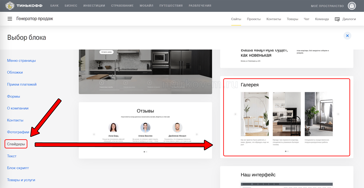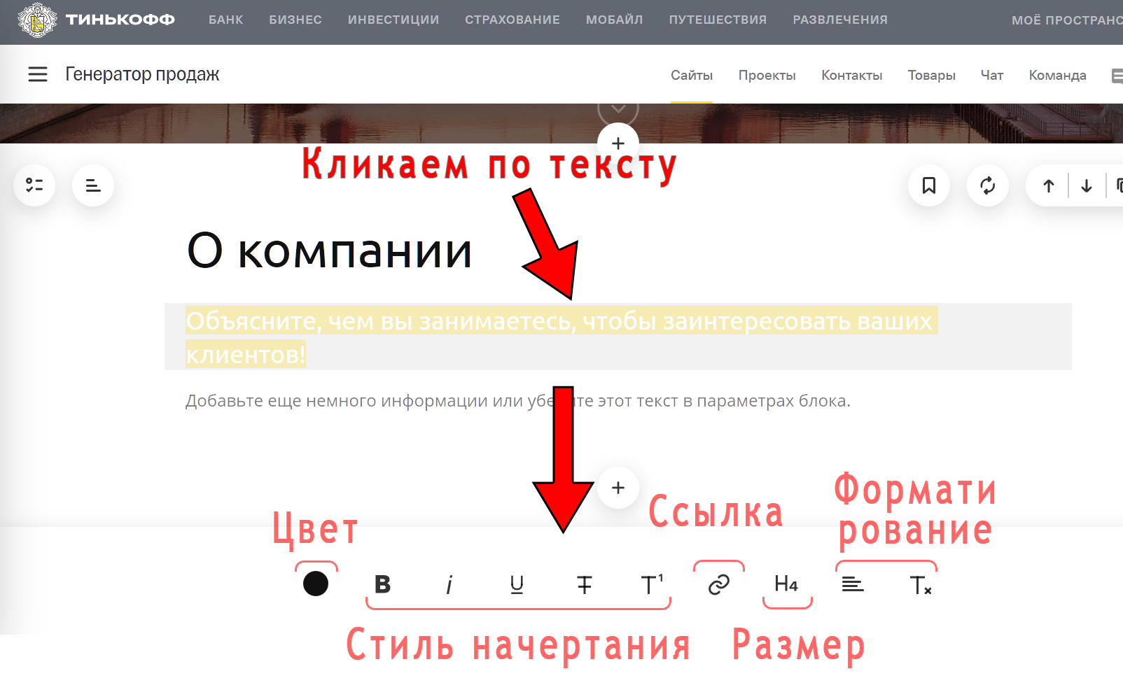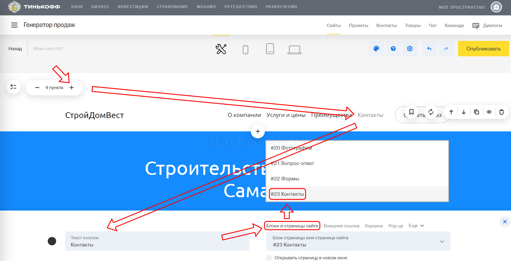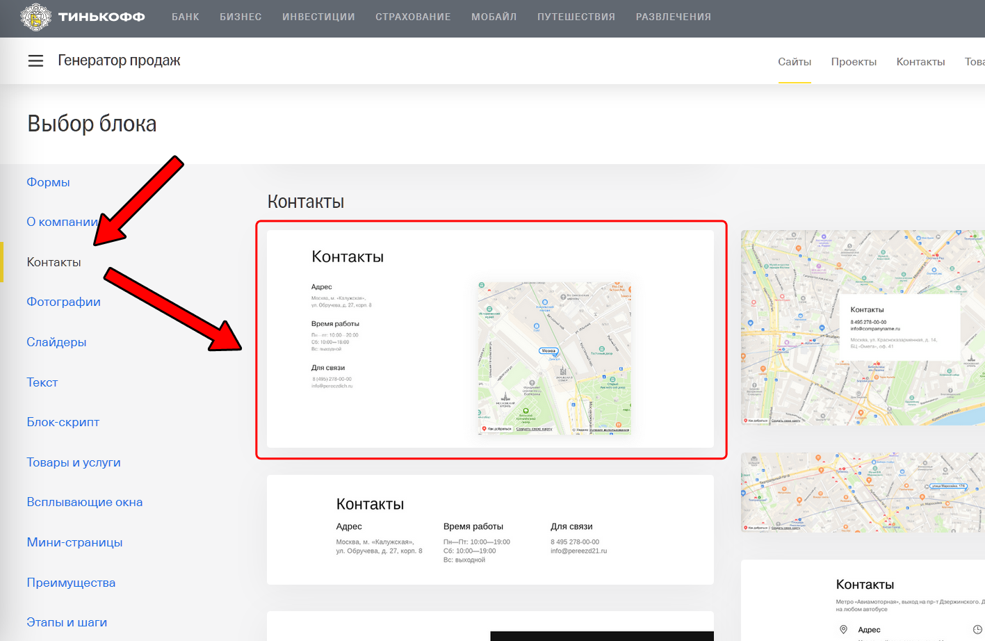 Редактирование блоков в конструкторе сайтов Тинькофф