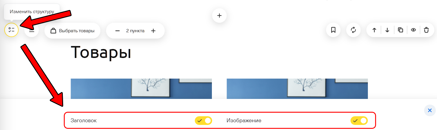 Лишние составляющие в блоке, например, цену и другие элементы вы можете легко убрать, кликнув в настройках блока на «Изменить структуру» или «Параметры блока» и выключить отображение того или иного элемента.