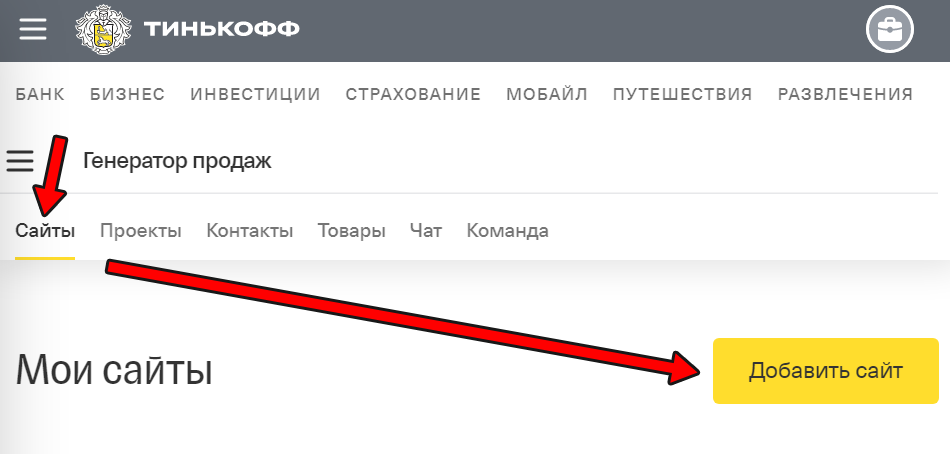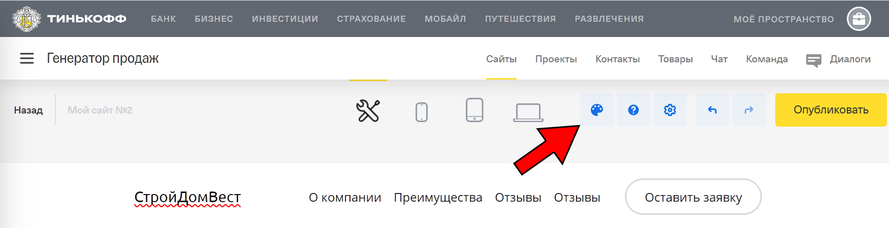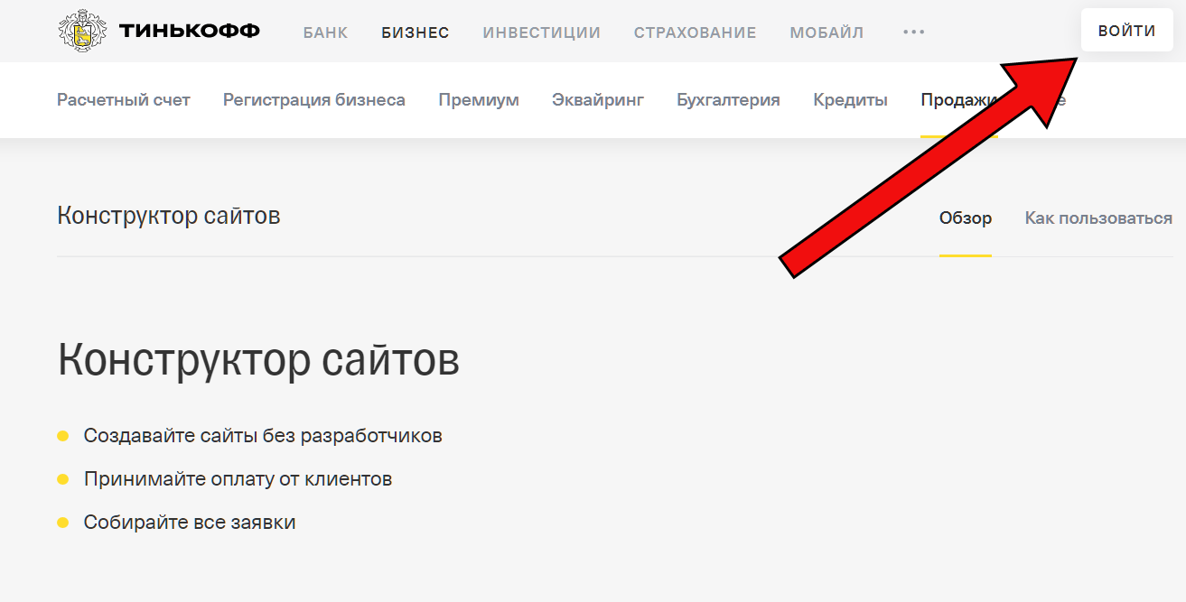 Вход в личный кабинет в конструкторе сайтов Тинькофф