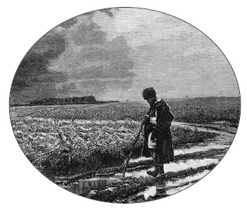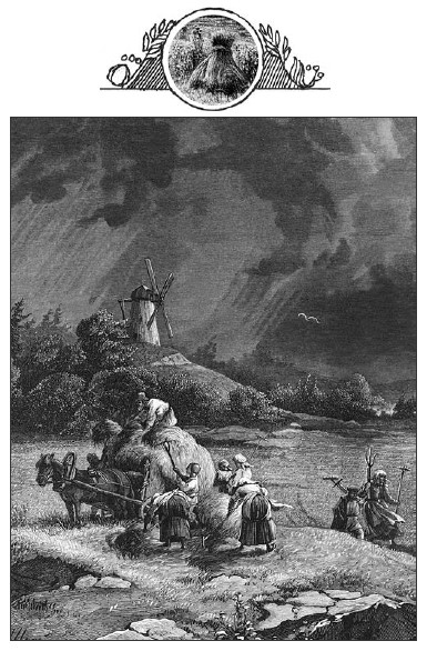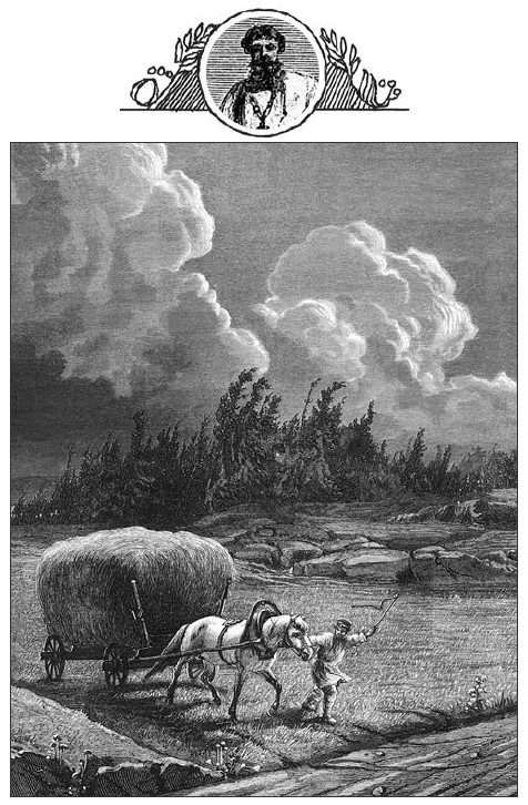 Красным полымемЗаря вспыхнула;По лицу землиТуман стелется;Разгорелся деньОгнём солнечным,Подобрал туманВыше темя гор;Нагустил егоВ тучу чёрную;Туча чёрнаяПонахмурилась,Понахмурилась,Что задумалась,Словно вспомнилаСвою родину…Понесут еёВетры буйныеВо все стороныСвета белова.ОполчаетсяГромом-бурею,Огнём-молнией,Дугой-радугой;ОполчиласяИ расширилась,И ударила,И пролиласяСлезой крупною —Проливным дождёмНа земную грудь,На широкую.И с горы небесГлядит солнышко,Напилась водыЗемля до́сыта;На поля, сады,На зелёныеЛюди сельскиеНе насмотрятся.Люди сельскиеБожьей милостиЖдали с трепетомИ молитвою;Заодно с веснойПробуждаютсяИх заветныеДумы мирные.Дума первая:Хлеб из за́кромаНасыпать мешки,Убирать воза;А вторая ихБыла думушка:Из села гужомВ пору выехать.Третью думушкуКак задумали, —Богу-ГосподуПомолилися.Чем свет по полюВсе разъехались —И пошли гулятьДруг за дружкою,Горстью полноюХлеб раскидывать;И давай пахатьЗемлю плугами,Да кривой сохойПерепахивать,Бороны зубьёмПорасчёсывать.Посмотрю пойду,Полюбуюся,Что послал ГосподьЗа труды людям:Выше поясаРожь зернистаяДремит колосомПочти до́ земи,Словно Божий гость,На все стороныДню весёломуУлыбается.Ветерок по нейПлывёт-лоснится,Золотой волнойРазбегается.Люди семьямиПринялися жать,Косить под кореньРожь высокую.