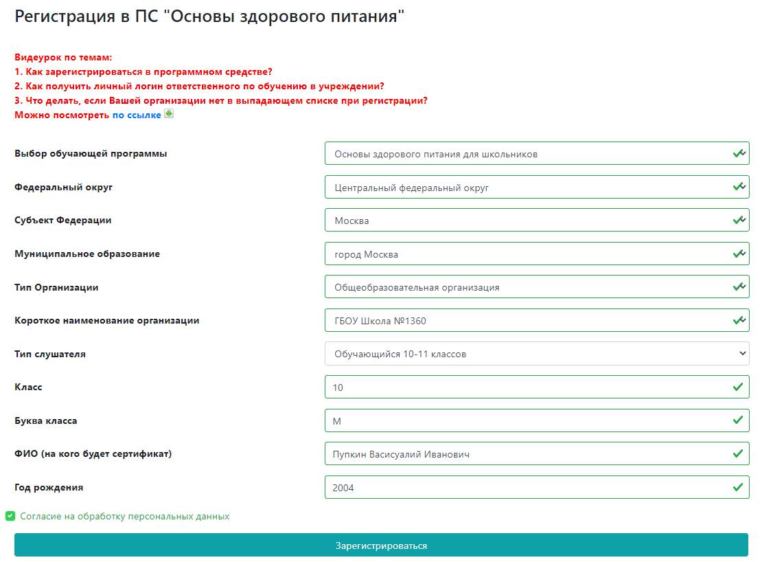 – ФИО – вводятся фамилия, имя и отчество того, на кого будет «выписан» электронный сертификат (т.е., например, никто не мешает родителям пройти это «псевдообучение» за своих детей);