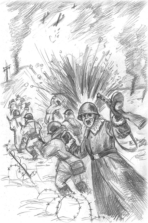 Солдаты шли в наступление; через пятнадцать минут от начала боя белое поле стало красным от крови