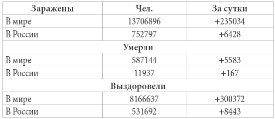 Хроника коронавируса. Данные на 16 июля 2020 г.