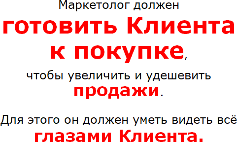 Маркетинг, как концепция, как интеллектуальное ремесло, появился не от хорошей жизни. На рынке покупателя, с его конкуренцией и возможностью Клиента выбирать среди множества предложений, стали понимать, что за Клиента нужно бороться; на него нужно как-то влиять, чтобы он покупал именно у данного продавца. Из глубины веков пришло осознание необходимости ориентации на Клиента, любви к Клиенту, понимания Клиента. Первым маркетологам это было понятно. Назовем их клиенто-маркетологами.