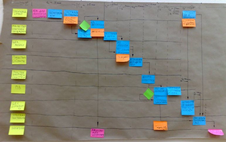 На следующем рисунке изображён рабочий макет доски канбан. Макет – потому, что доска на данной фотографии находилась на стадии запуска. Однако, а уже выполняла ряд важных функций.