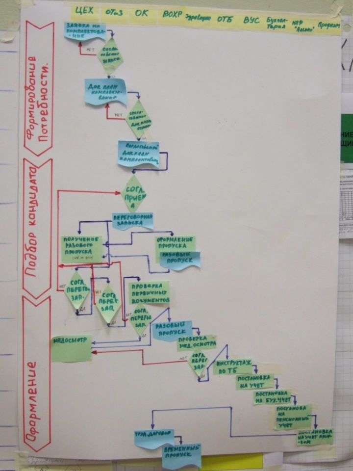 В продолжение вопроса о персонале, следующий пример – доска расстановки персонала. Данный пример взят из реальной практики (причём, Российской), он достаточно сложный для восприятия и внедрения, однако рассмотреть его будет интересно.