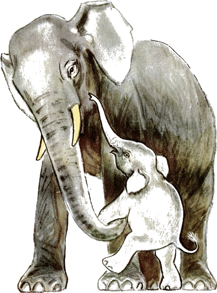Как живые, в нашей книжкеслон,……слониха………………и слонишки.Двух– и трёхэтажный рост,С блюдо уха оба,впереди на морде хвостпод названьем «хобот».А из пасти —……………шутки бросьте! —два клыка……………слоновой кости.Сколько им еды, питья,сколько платья снашивать!Даже ихнее дитяростом с папу с нашего.