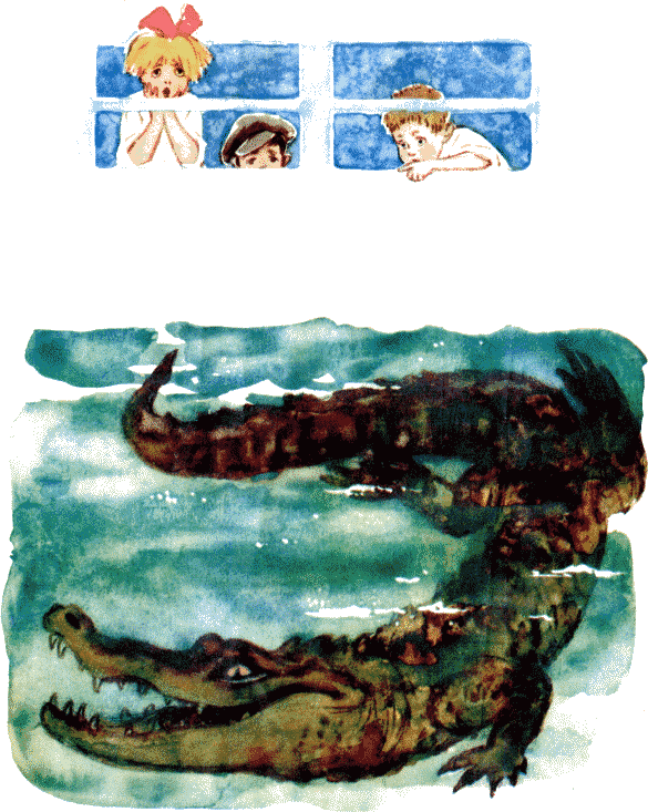 Крокодил. Гроза детей.Лучше не гневите.Только он сидит в водеи пока не виден.