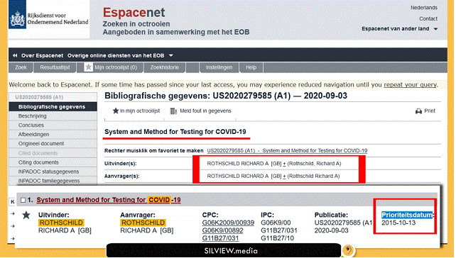 6. В 2015 году Ротшильд подал заявку на патент на тесты на ковидлу, задолго до того, как первый «китаец наелся летучих мышей».
