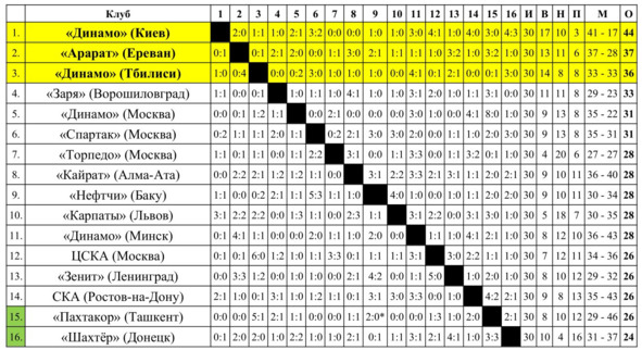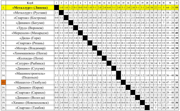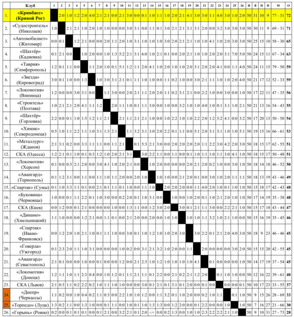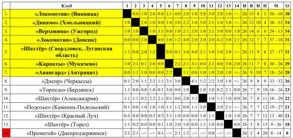 – «Авангард» (Жёлтые Воды) и «Торпедо» (Бердянск) покинули розыгрыш чемпионата СССР навсегда, но клубы продолжали существование вплоть до последнего чемпионата СССР по футболу 1991 года, принимая участие в чемпионате Украинской ССР и региональных соревнованиях.