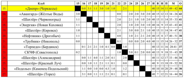 Учитывались результаты матчей команд между собой в зоне.