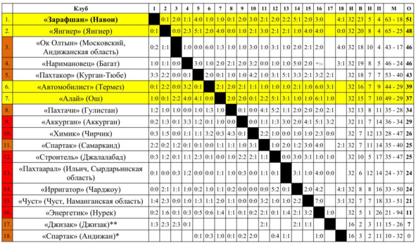 * «Спартак» (Андижан) снят с розыгрыша после первого тура.