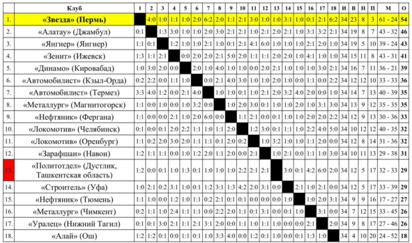 – Высшую лигу покинули «Пахтакор» (Ташкент) и «Шахтёр» (Донецк).