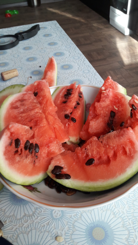И повел нашу группу на переборку арбузов, которые привезли из Астрахани. Мы снова выстроились в цепочку, и через час все арбузы были складированы. Естественно, в благодарность заведующий базой выбрал несколько самых больших и принёс в беседку, пригласив нас отведать сладких ягод. Нас не надо было просить дважды, и, сполоснув руки, через минуту мы с наслаждением уминали сочную сахаристую мякоть, обливаясь сладким соком. Да, в училище нам арбузов не подавали.