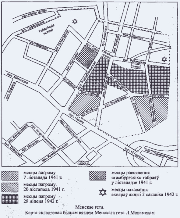 «Минское гетто (20 июля 1941 – 21 октября 1943) – еврейское гетто, место принудительного переселения евреев Минска в процессе преследования и уничтожения евреев во время оккупации территории Белоруссии войсками нацистской Германии в период Второй мировой войны.