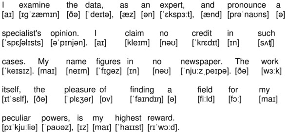 I examine the data, as an expert, and pronounce a specialist’s opinion. I claim no credit in such cases. My name figures in no newspaper. The work itself, the pleasure of finding a field for my peculiar powers, is my highest reward.