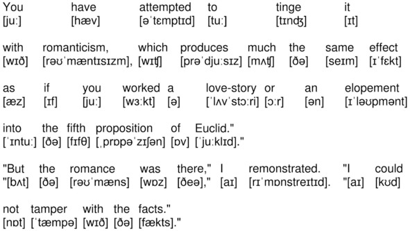 You have attempted to tinge it with romanticism, which produces much the same effect as if you worked a love-story or an elopement into the fifth proposition of Euclid.»
