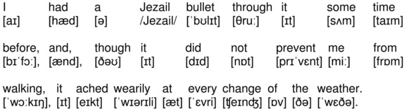 I had a Jezail bullet through it some time before, and, though it did not prevent me from walking, it ached wearily at every change of the weather.