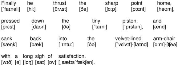 Finally he thrust the sharp point home, pressed down the tiny piston, and sank back into the velvet-lined arm-chair with a long sigh of satisfaction.