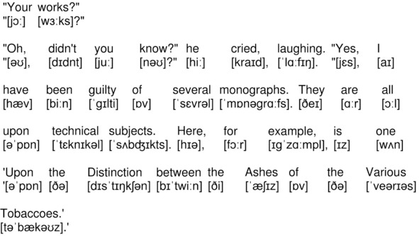 More than once during the years that I had lived with him in Baker Street I had observed that a small vanity underlay my companion’s quiet and didactic manner. I made no remark, however, but sat nursing my wounded leg.