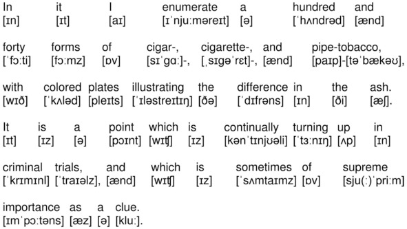 In it I enumerate a hundred and forty forms of cigar-, cigarette-, and pipe-tobacco, with colored plates illustrating the difference in the ash. It is a point which is continually turning up in criminal trials, and which is sometimes of supreme importance as a clue.