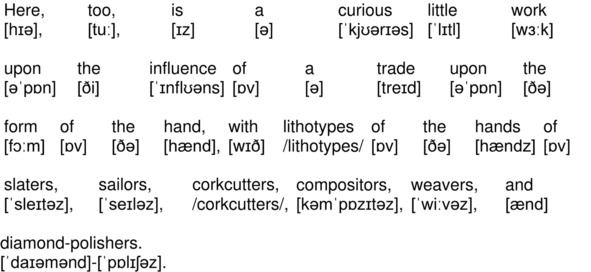 Here, too, is a curious little work upon the influence of a trade upon the form of the hand, with lithotypes of the hands of slaters, sailors, corkcutters, compositors, weavers, and diamond-polishers.