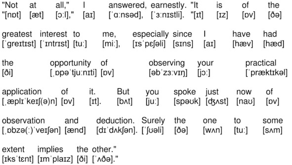 «Not at all,» I answered, earnestly. «It is of the greatest interest to me, especially since I have had the opportunity of observing your practical application of it. But you spoke just now of observation and deduction. Surely the one to some extent implies the other.»